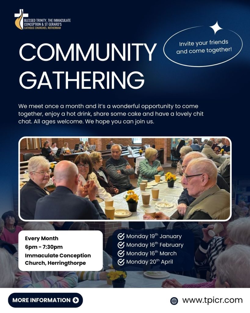 We have a Men’s prayer group, that runs on the first Monday of every month in the evening at around 6:30pm. It begins with some light refreshments followed by some quiet time with the Lord, then listening to a piece of scripture or spiritual writing and sharing thoughts on the reading and conclude with night prayer.
